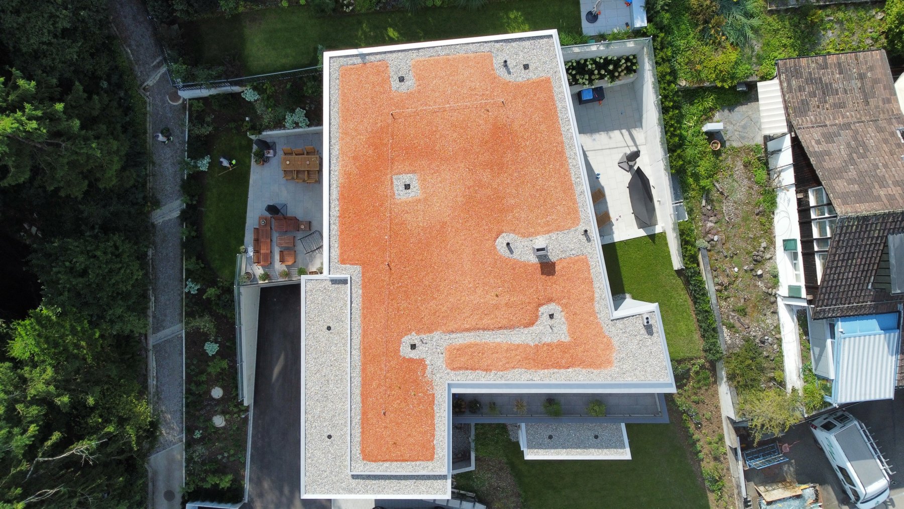 Kurze Aushärtungszeiten und extreme Langlebigkeit machen Flüssigkunststoffe zum idealen Werkstoff. Wir setzen ihn für An- und Abschlüsse, Detailausbildungen, Terrassen, Balkone, Laubengänge und Treppen aller Art ein.